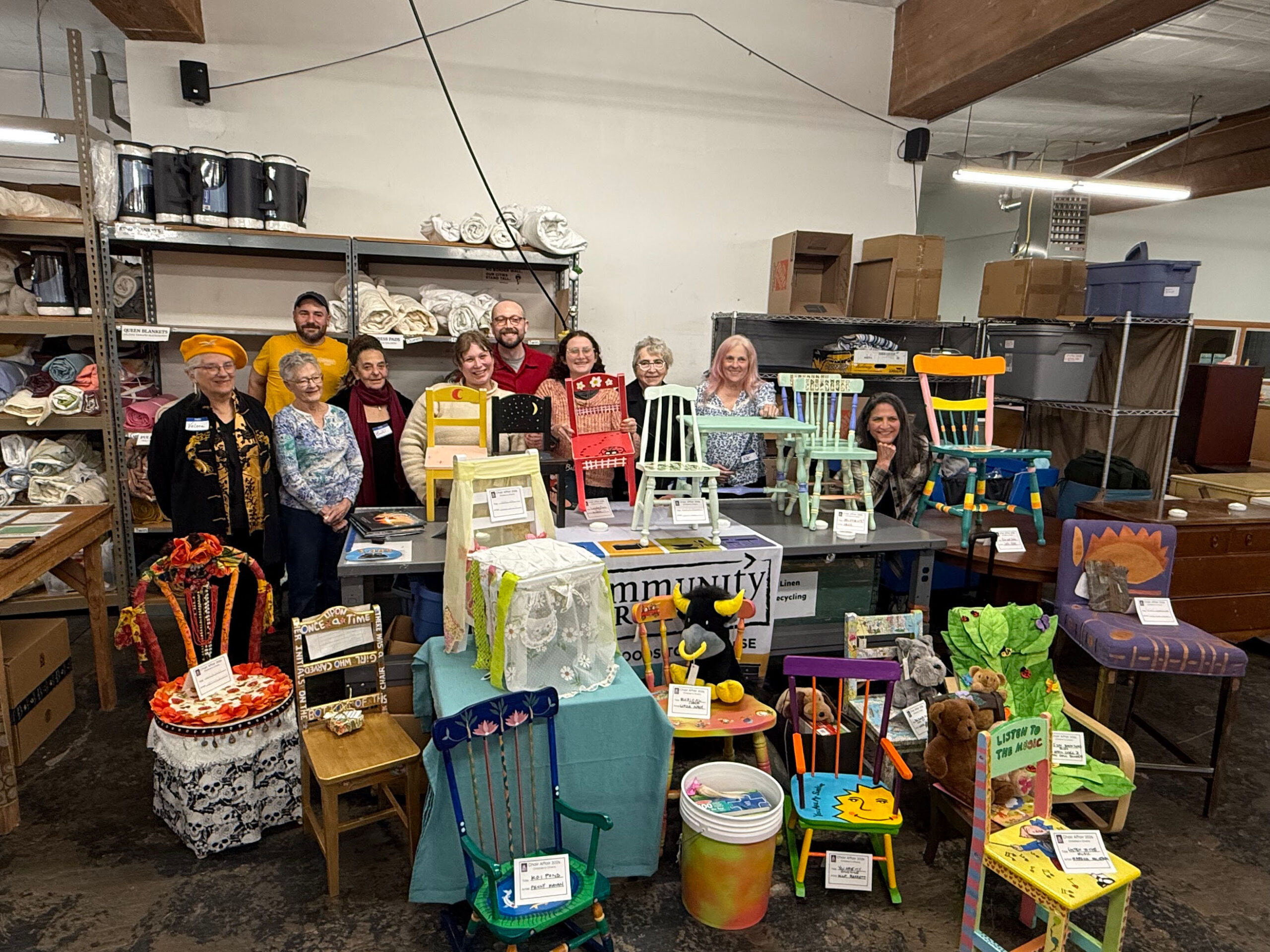 Prior to Chair Affair, local artists transform castoff chairs into beautiful, creative works of art. Businesses and individuals are invited to sponsor children’s chairs for $500 each. This project supports our mission, while centering the dignity, autonomy, and joy of our littlest furniture bank visitors.
