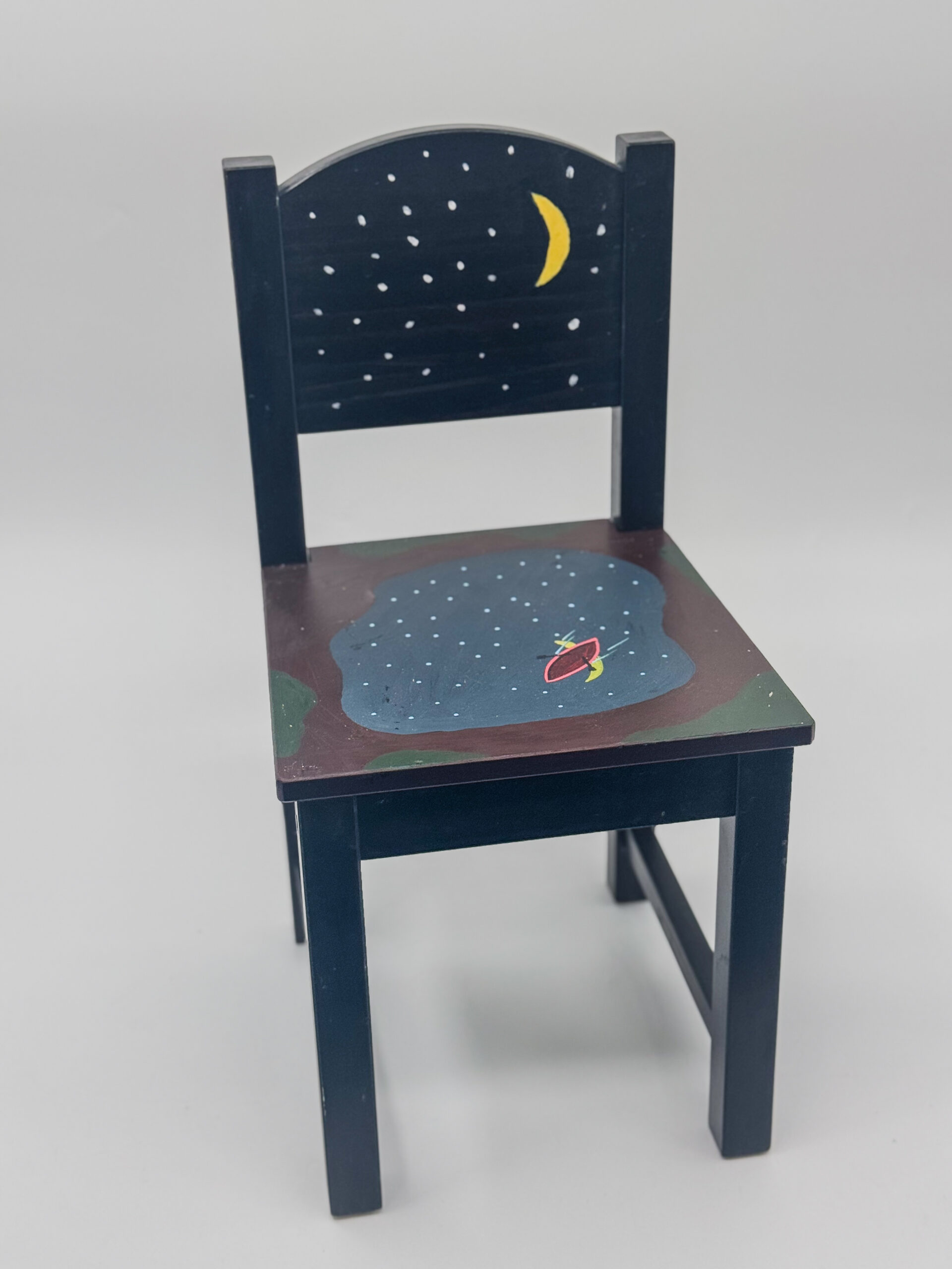 What evokes adventure and the wonder of nature more than a midnight boat ride on a lake? The child who chooses this chair will bring that energy into their home and life when they sit on this chair at their next playtime. Help bring this opportunity to more children in our community by sponsoring this chair which comes with a children’s book illustrated by local artist Matt Schu.
