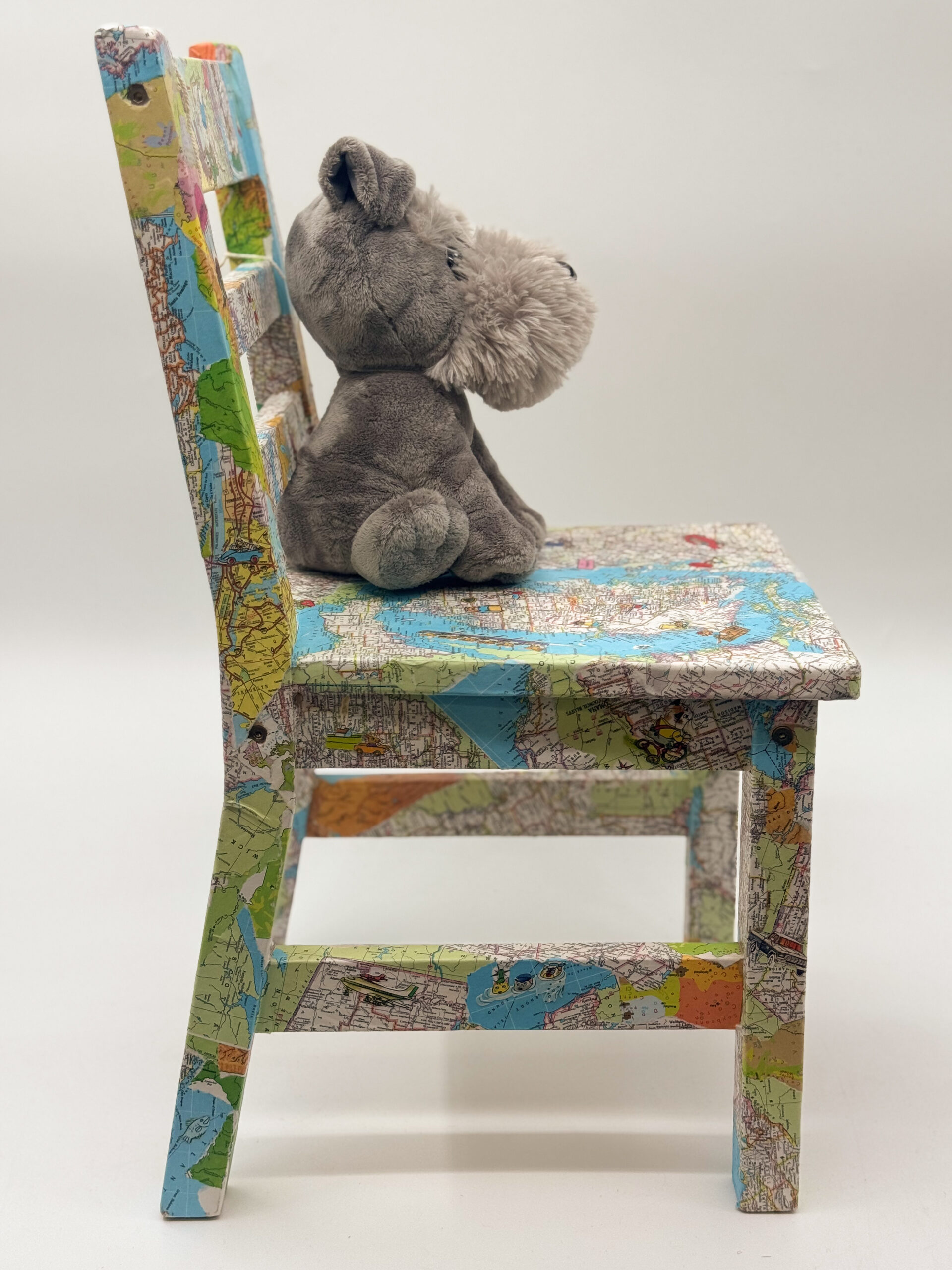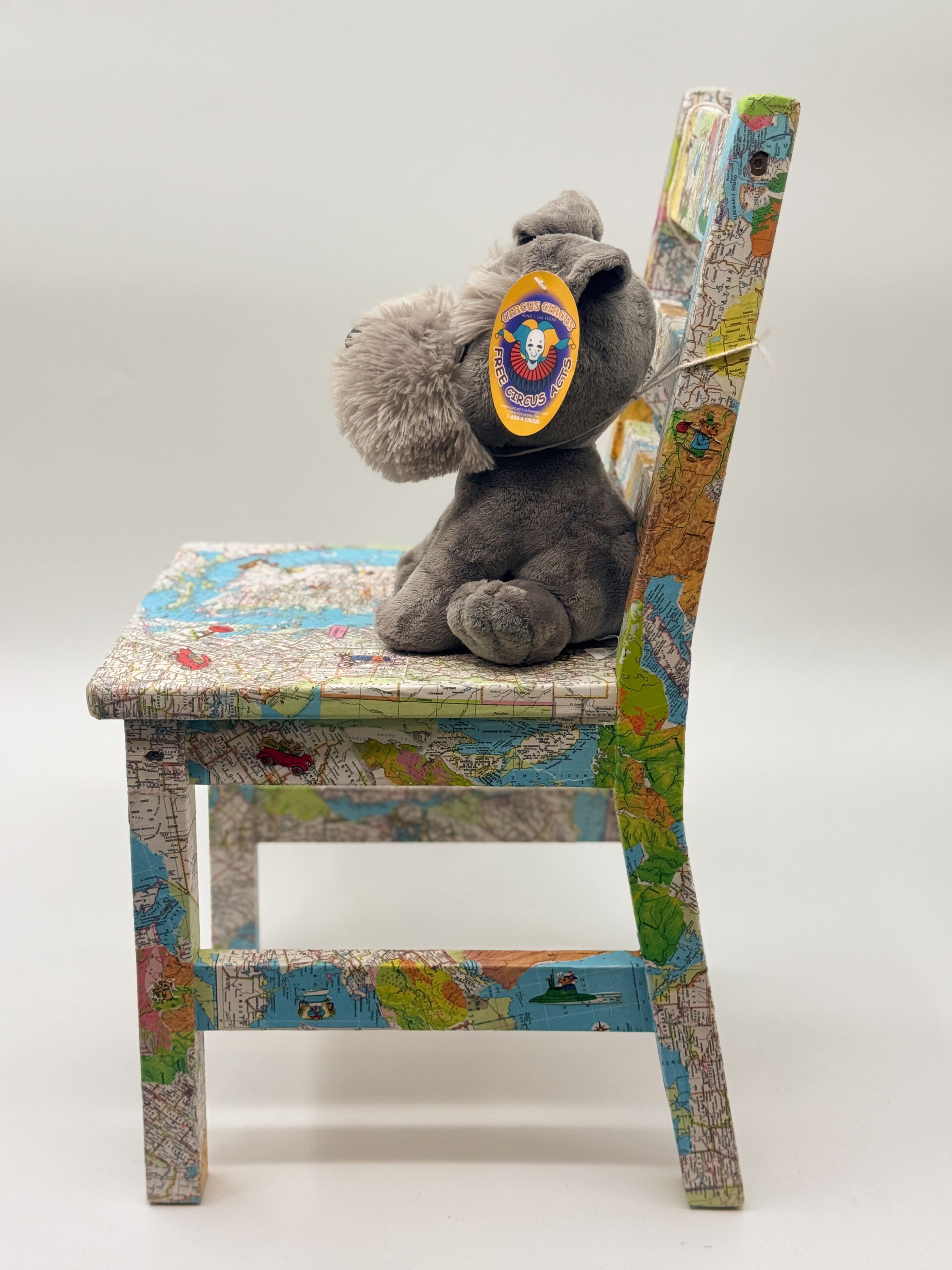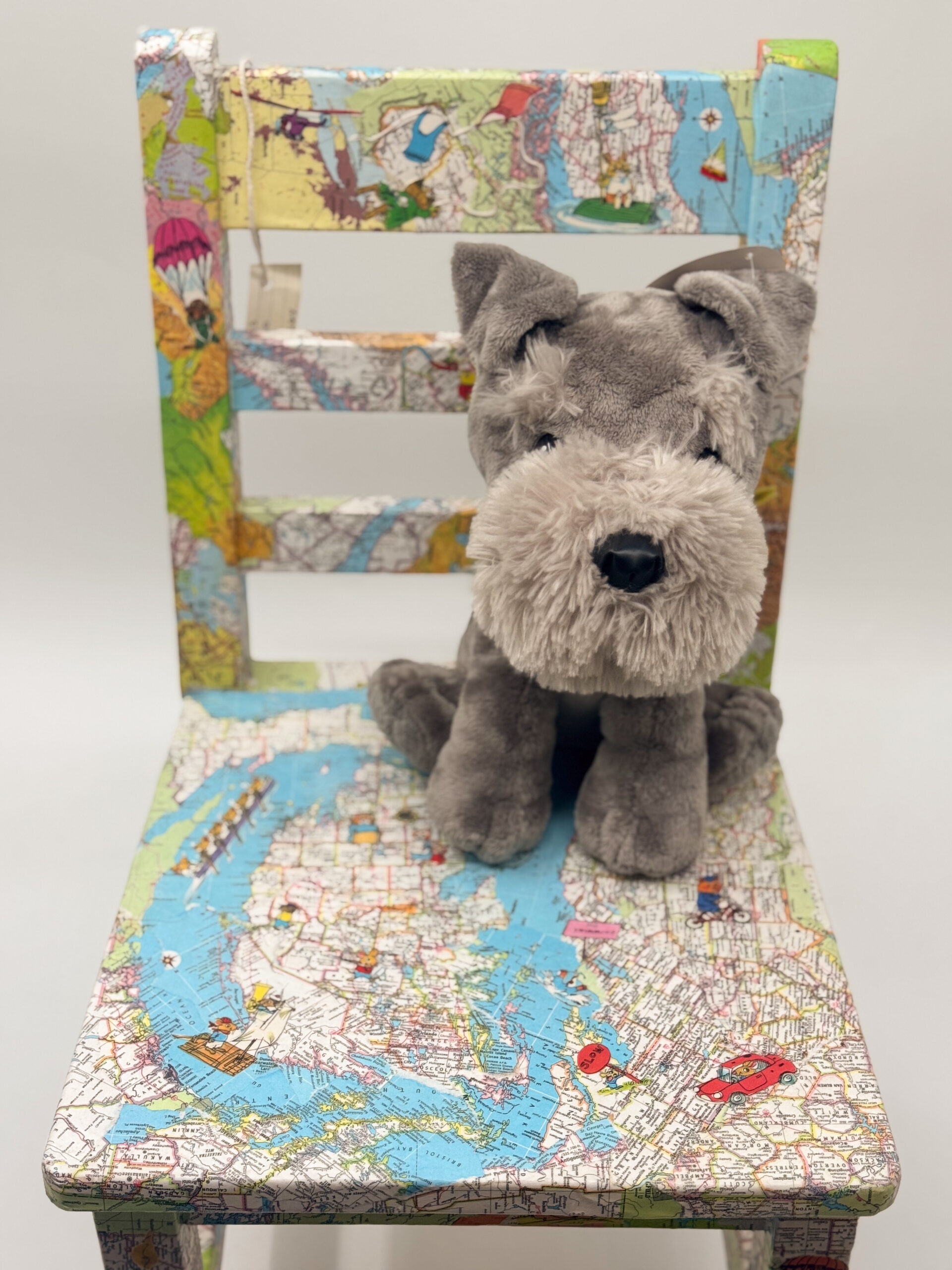 Bring Richard Scarry out of the pages of a book and into a child’s home! This fun chair is covered with maps and adorned with various Richard Scarry characters and scenes. Complete with a furry little stuffed puppy and a bag of books, this chair is sure to make any little explorer happy. Give children in our community the opportunity to explore their world by sponsoring this chair today!