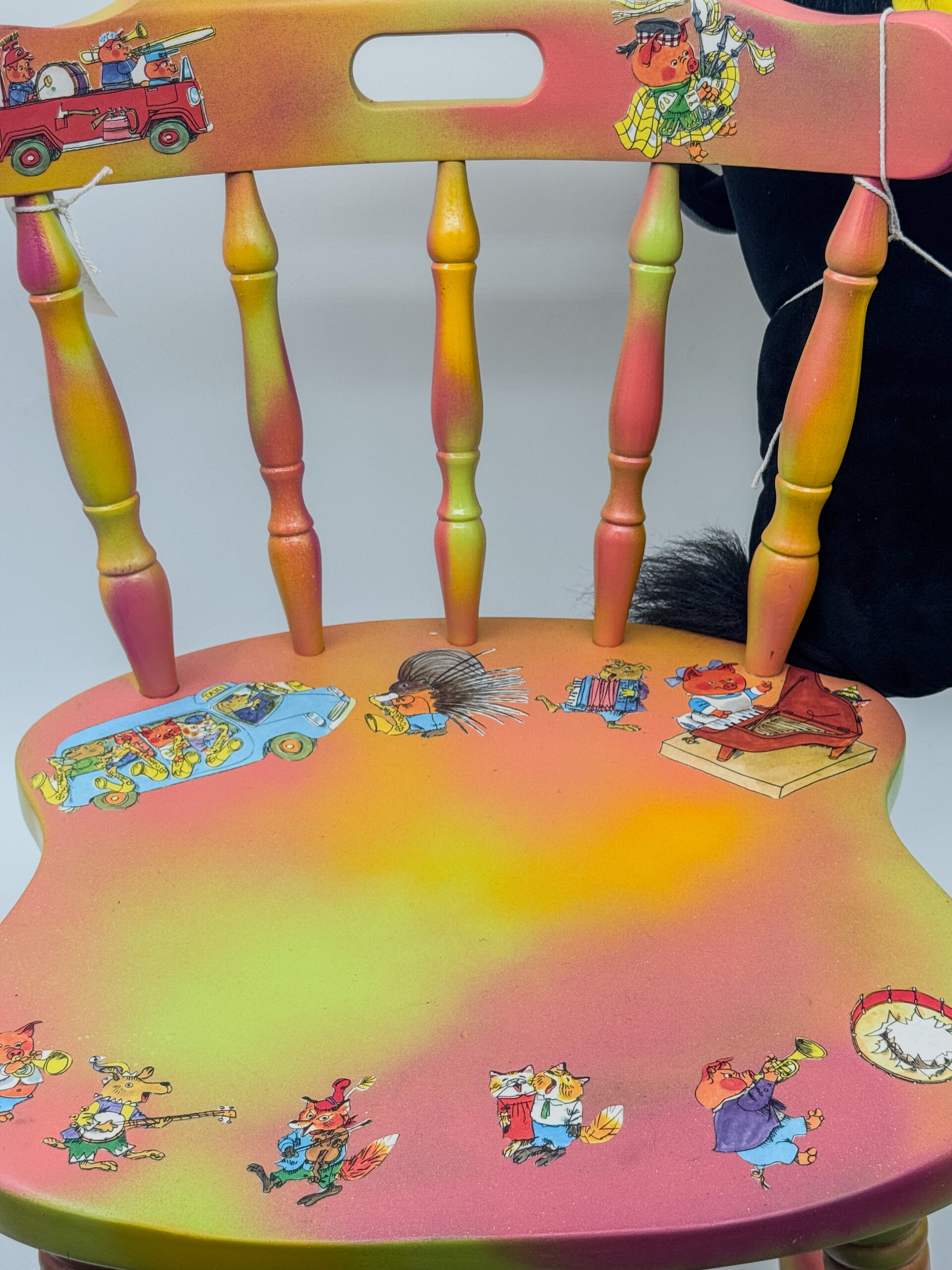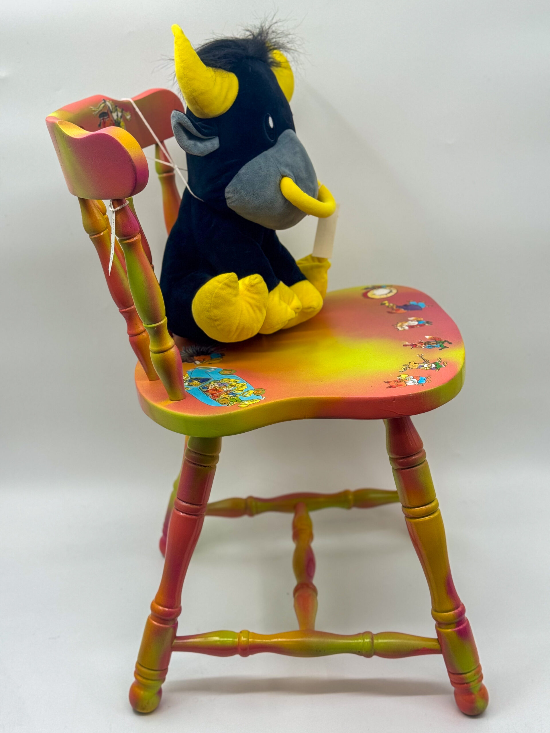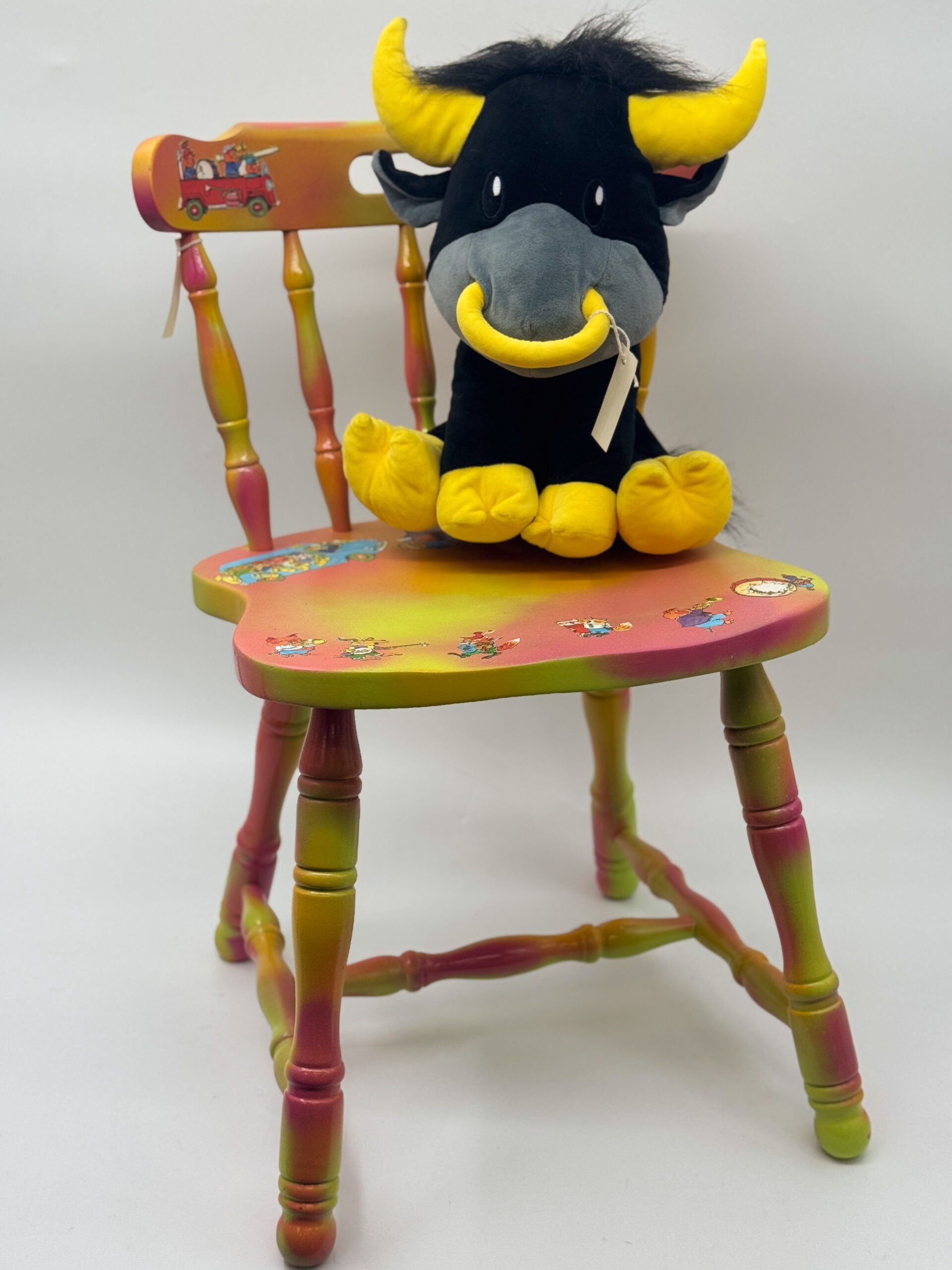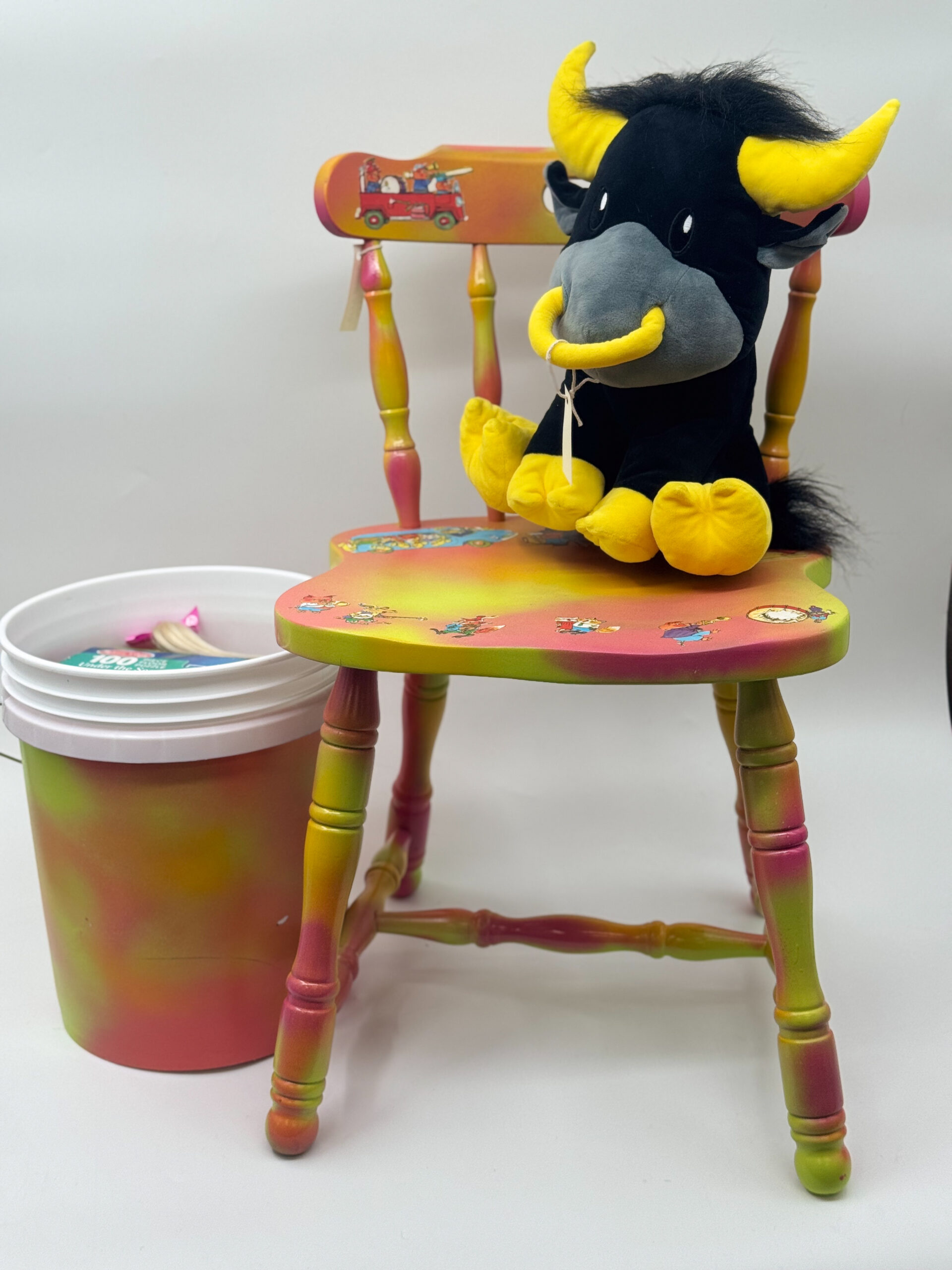 Bring on the fun with this brightly colored chair! Richard Scarry’s whimsical illustrations come to life on this chair that is sure to bring its recipient hours of entertainment. Complete with a stuffed friend and a bucket (which can double as a drum!) filled with books and activities, this chair will bring music to everyone’s ears. Give the gift of song and creativity and sponsor this chair today!