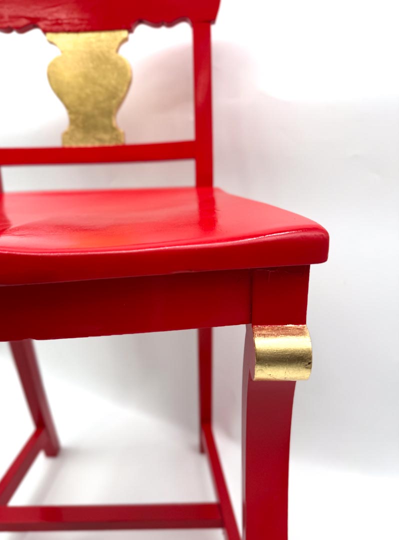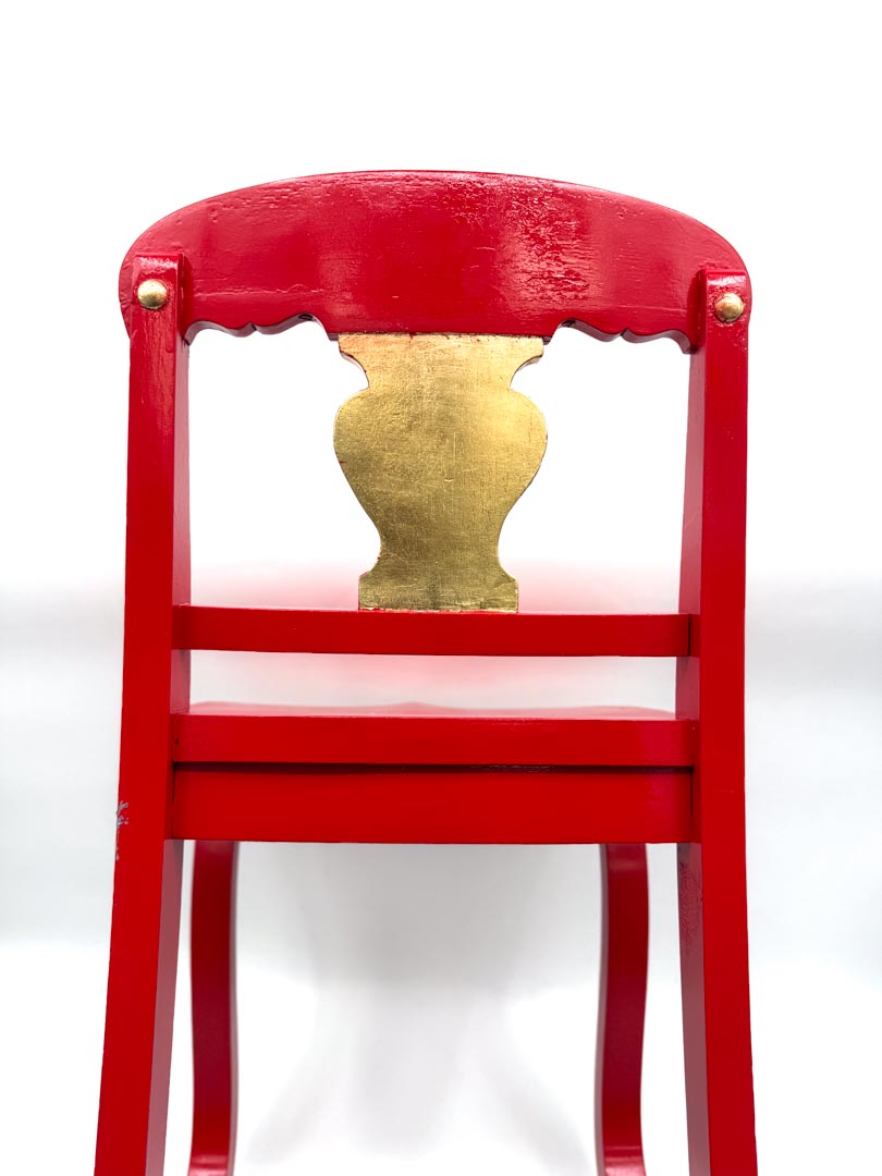 This chair design is a reference to a Queen Anne side chair from the 1750s. Known for vase-shaped splat (back panel), svelte cabriole legs and hand-carved ball-and-claw feet. This design, made sometime between 1900-1930, is a modern interpretation featuring only mechanically cut side profiles on the legs and machine-made mortise and tenon joints to pay homage to the craftsmanship of 150 years past. The wood is solid mahogany.