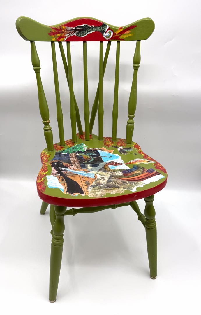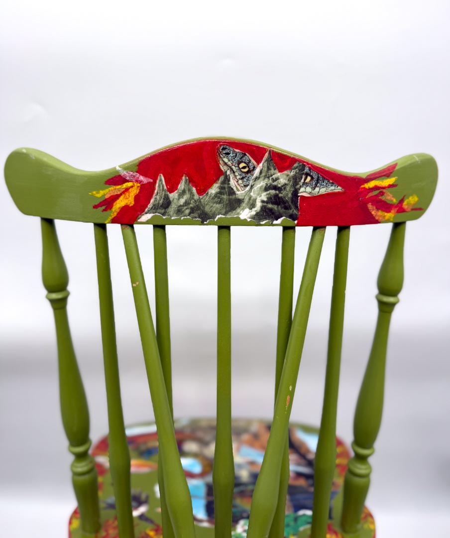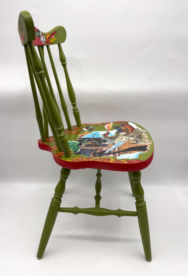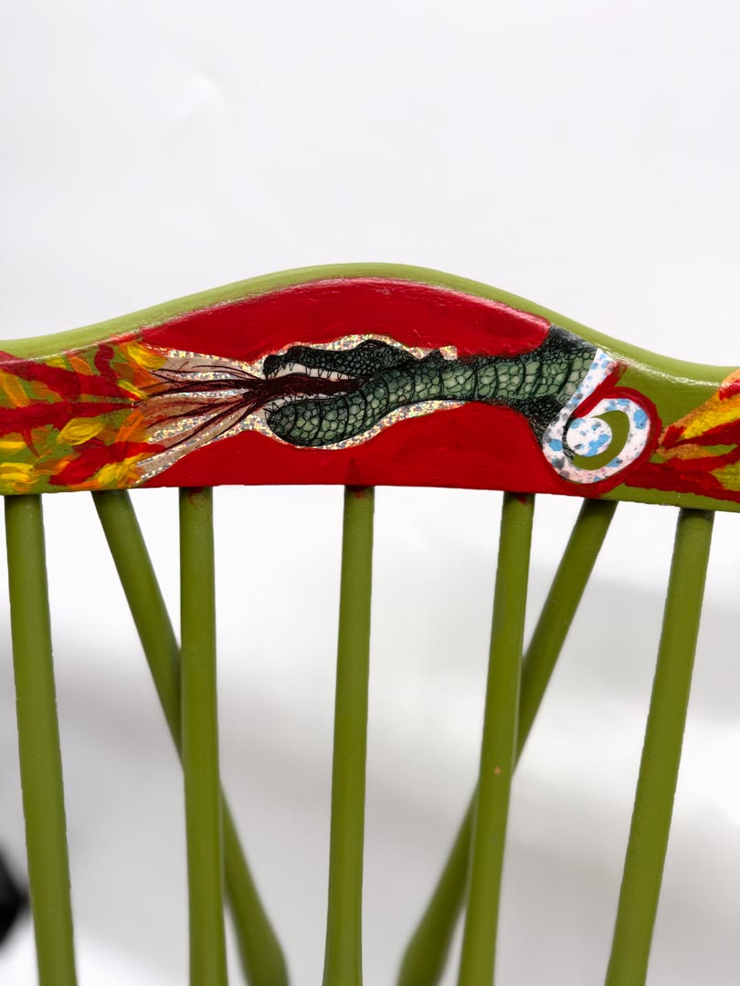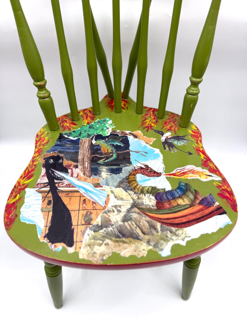 This fiery, hand-crafted chair is bursting with bold energy and imagination. Covered in a decoupage of dragons and swirling flames, it feels like it was forged straight from a mythical world. This chair is perfect for a child with a fearless spirit who loves stories and letting their imagination roar.